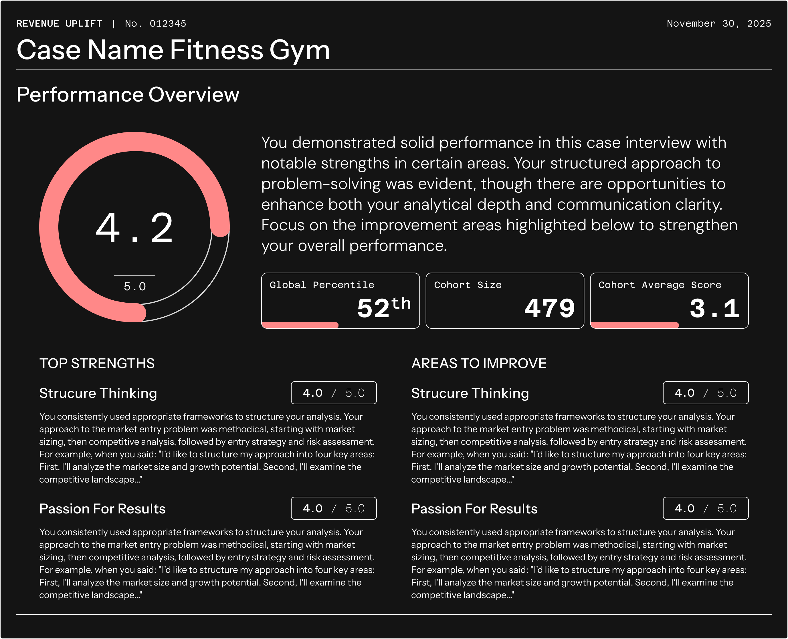 外資戦略コンサルの採用基準を再現した評価レポートで、着実な成長を実感